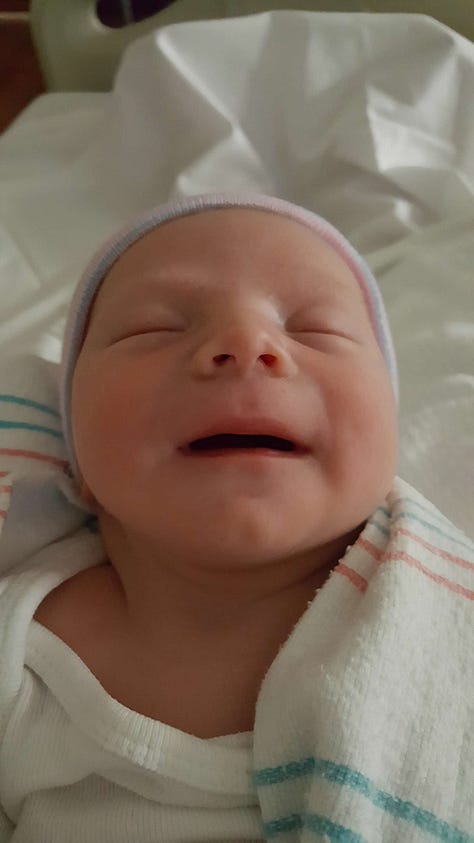 After a very quick (by birthing standards) actual pushing time, on Monday, June 4, 2018, at 10:12 p.m., our son Oliver Benjamin was born.